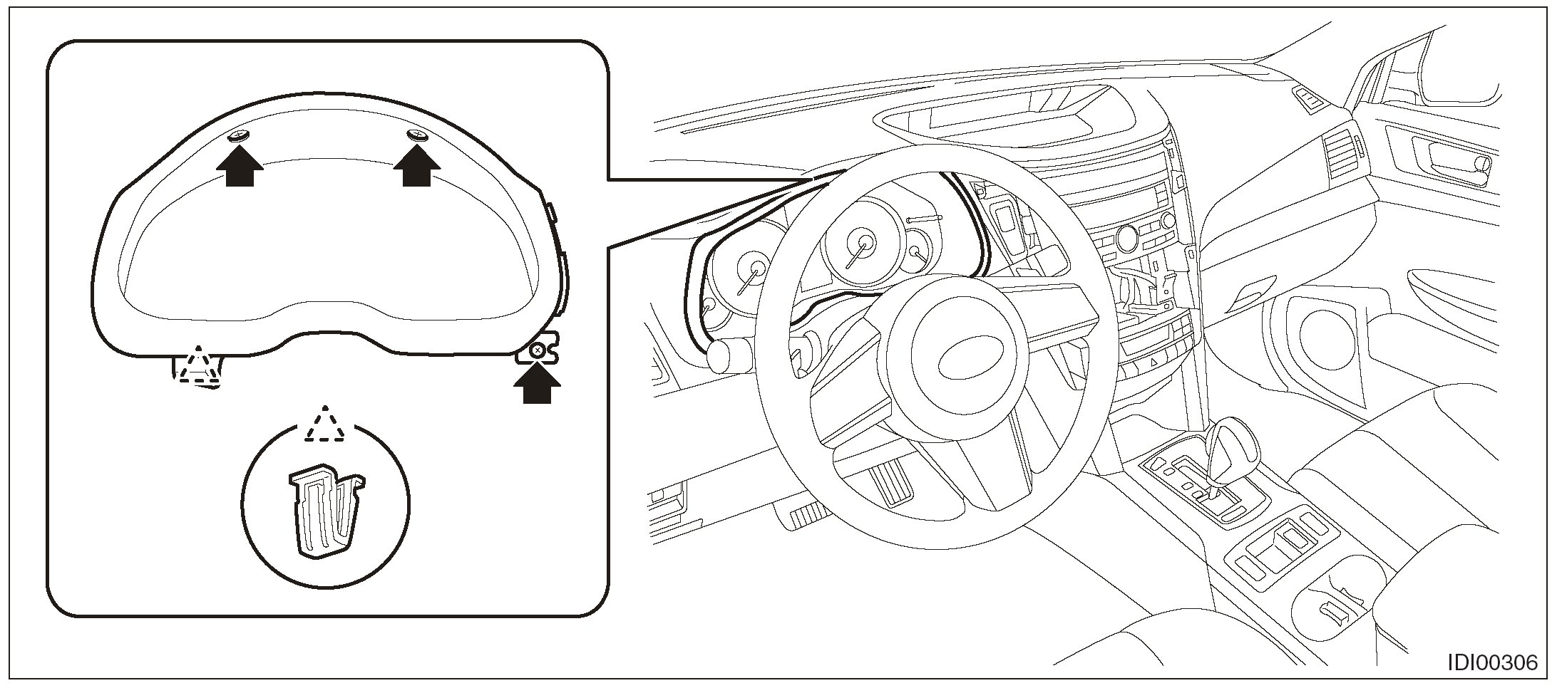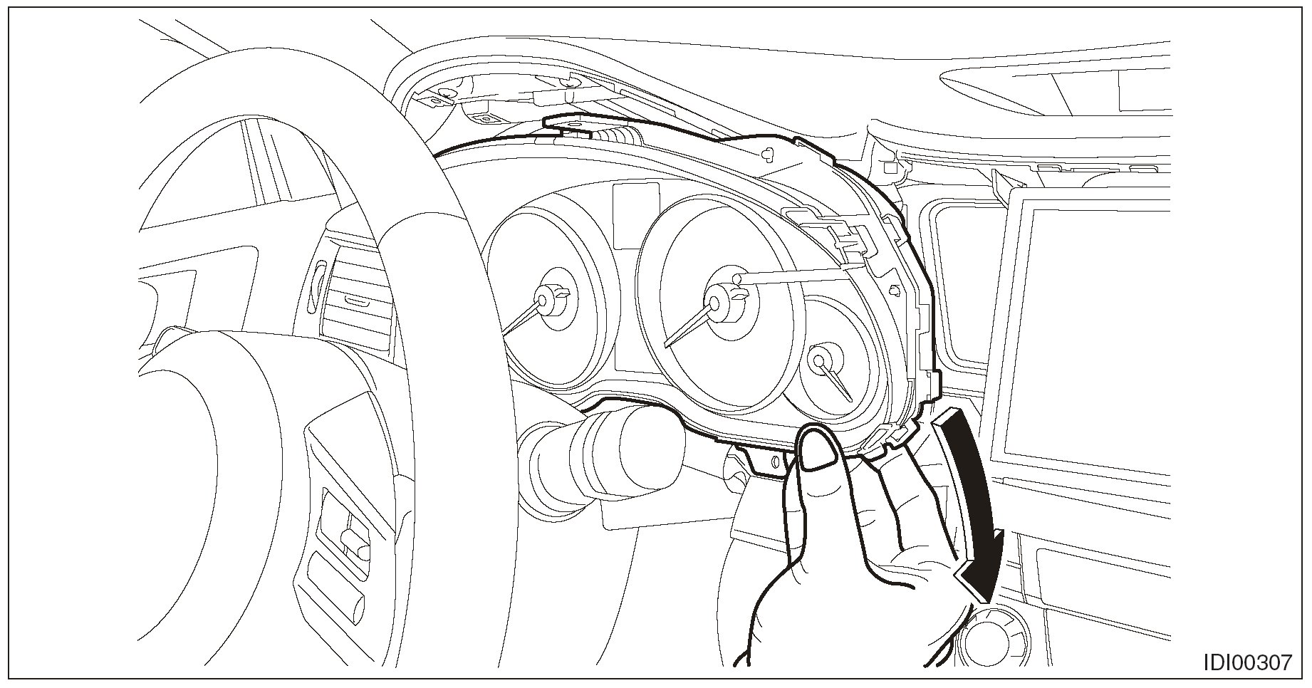 6. Remove the combination meter assembly as shown in the figure.