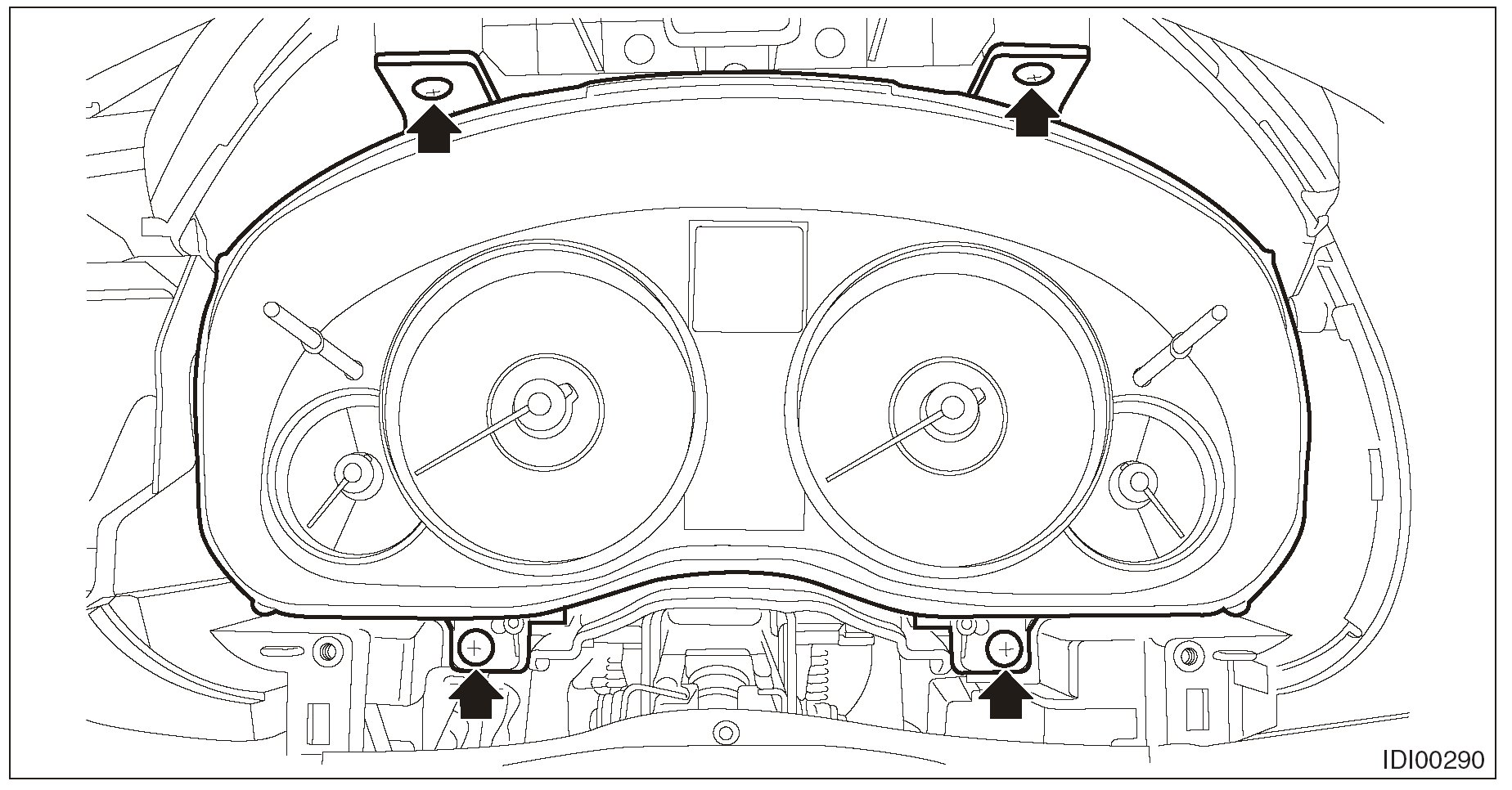5. Remove the four screws and pull out the combination meter toward you to disconnect the connectors.