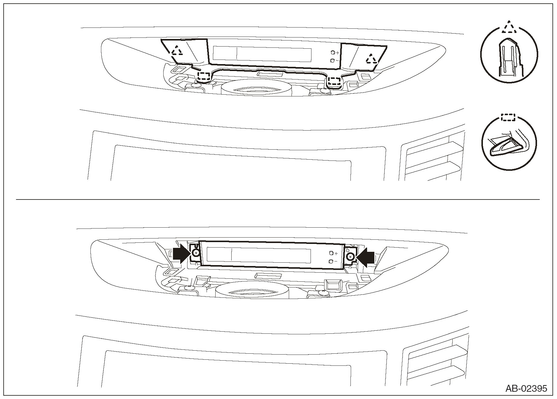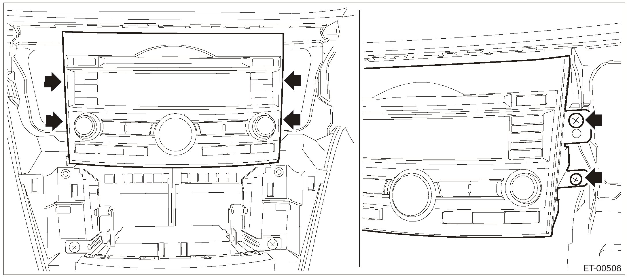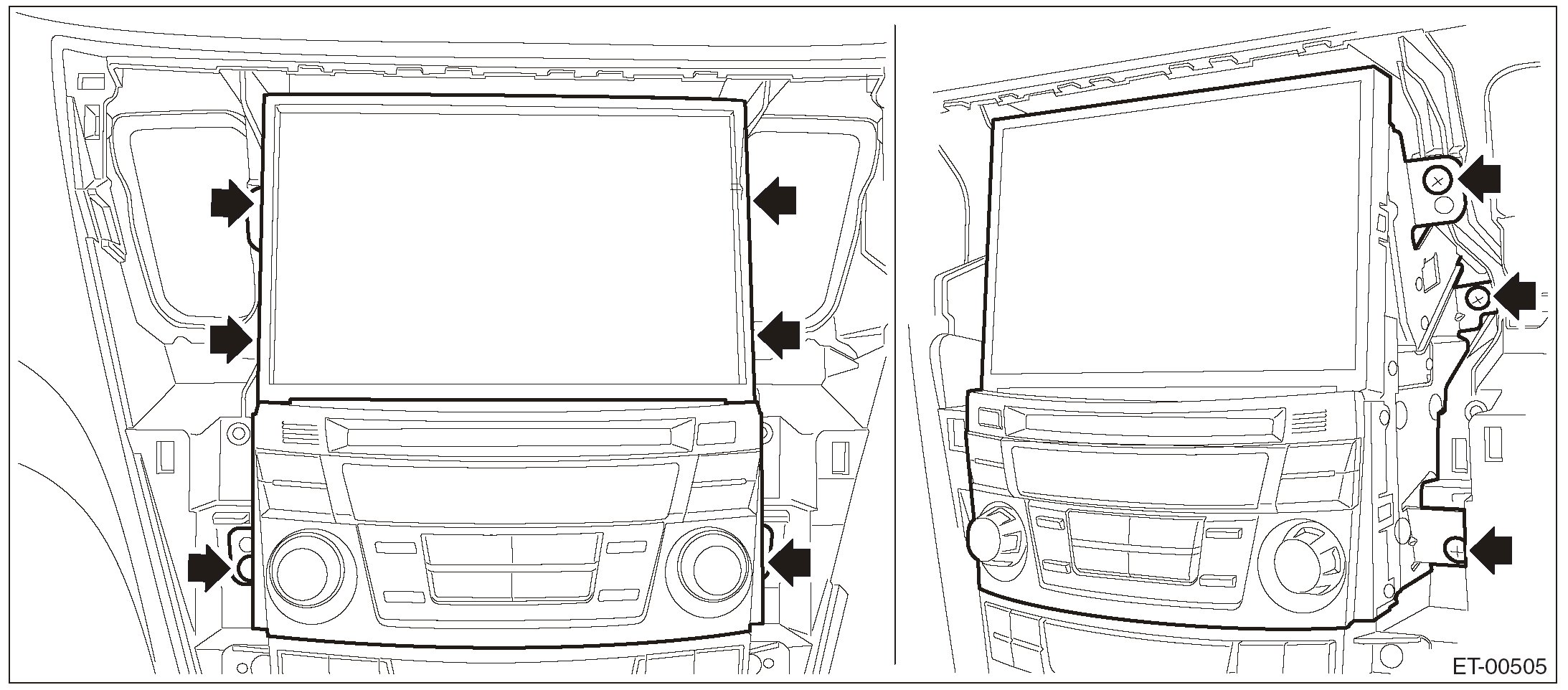 NOTE: An easy way of removal is to first remove the audio assembly or navigation assembly and push up the cover from the backside.