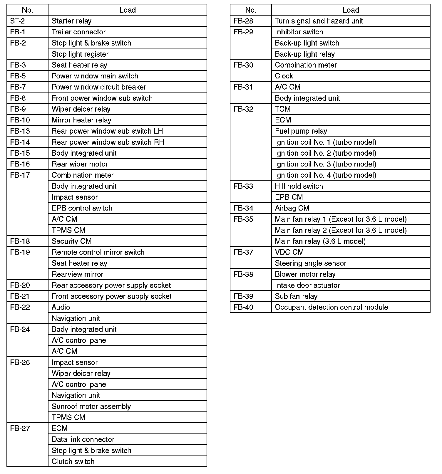 Diagram Legend ST-2 To FB-40:
