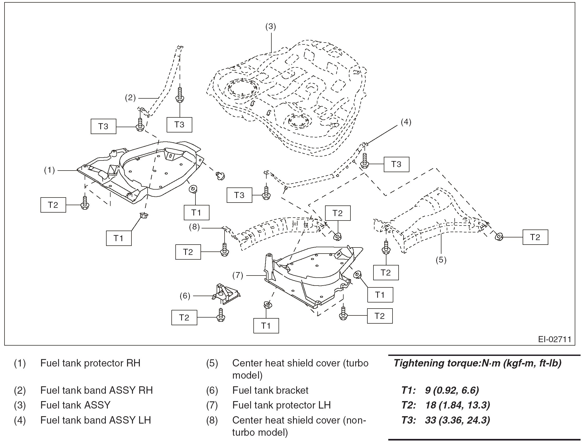 Tightening torque: Refer to "COMPONENT" of "General Description". [Ref. to FUEL TANK PROTECTOR, COMPONENT, General Description.]