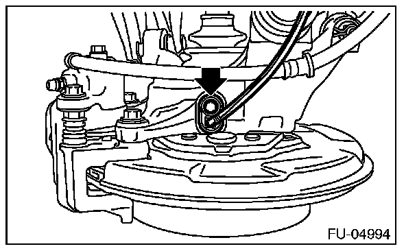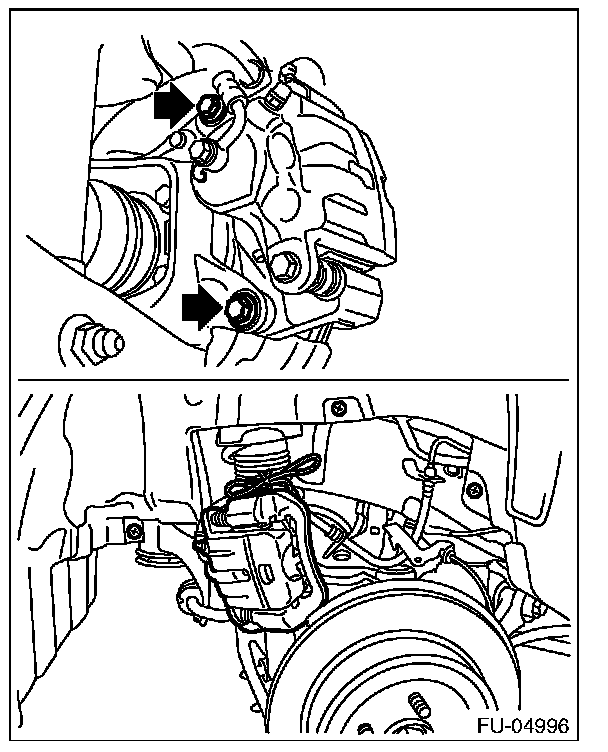 14. Remove the rear disc brake assembly and tie it to the body side of the vehicle.