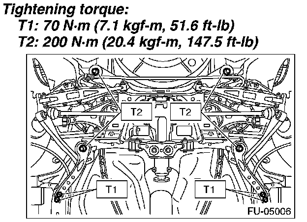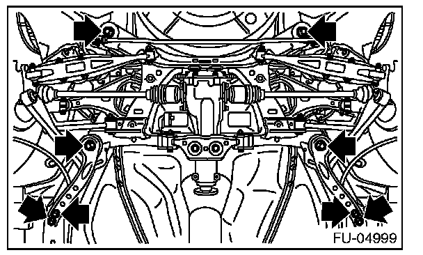 3. Remove the bolts which secure the rear suspension assembly to the body.
