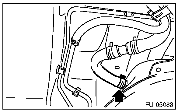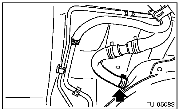 25. Disconnect the fuel filler hose (A) and circulate hose (B) from the fuel filler pipe assembly.