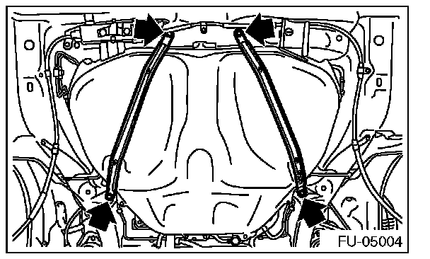 - Fuel may remain in the fuel tank. This will cause the left and right sides to be unbalanced. Be careful not to drop the fuel tank when removing.