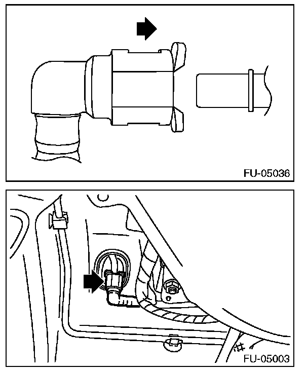 8. Disconnect the quick connector on the fuel delivery tube (A).