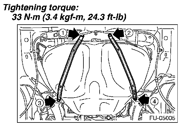 5. Tighten the bolts of the fuel tank band in the order shown in the figure.