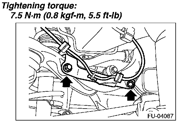 16. Install the rear ABS wheel speed sensor harness bracket to the upper arm.