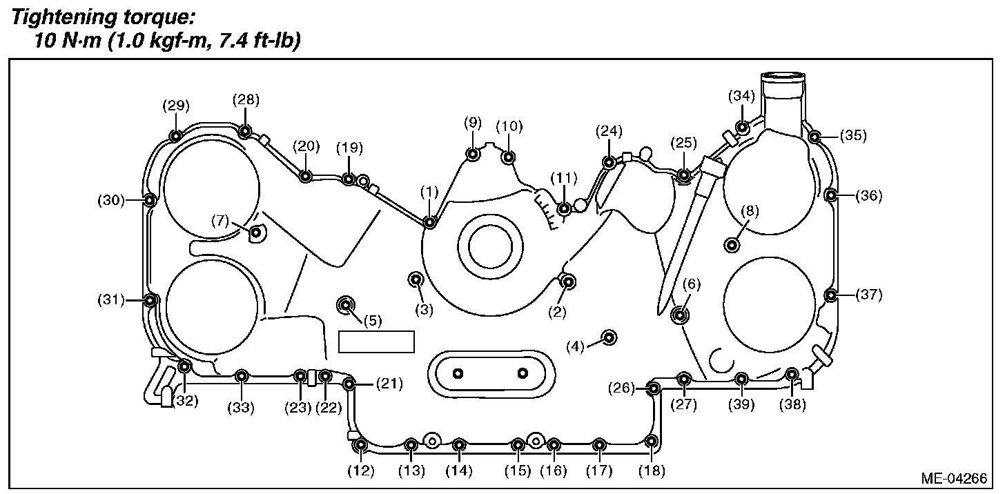 CAUTION: Do not install the chain cover installation bolts in wrong place.