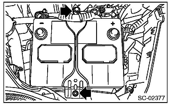 1. After disconnecting the battery ground terminal, remove the terminal cover, then disconnect the positive terminal.