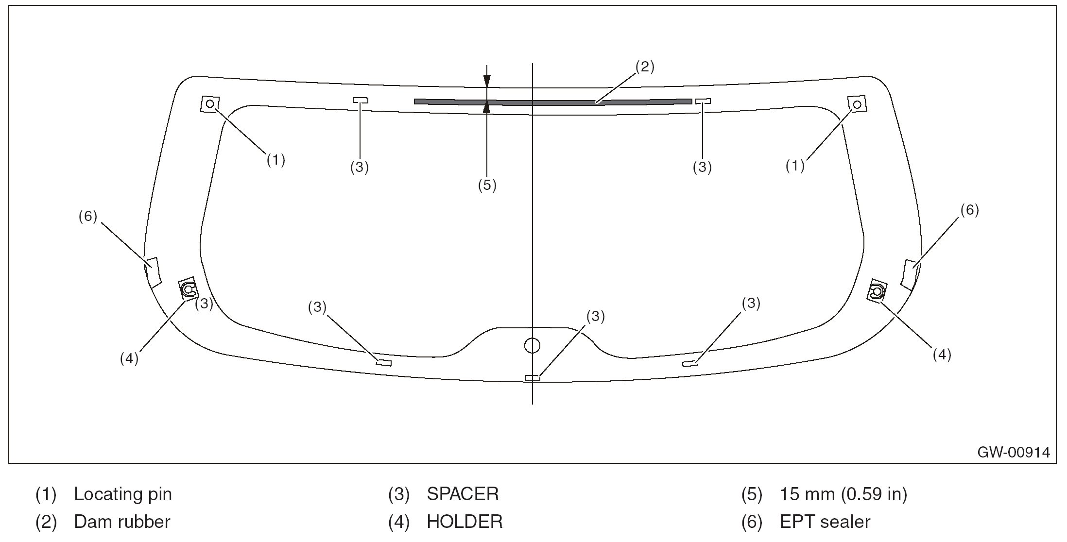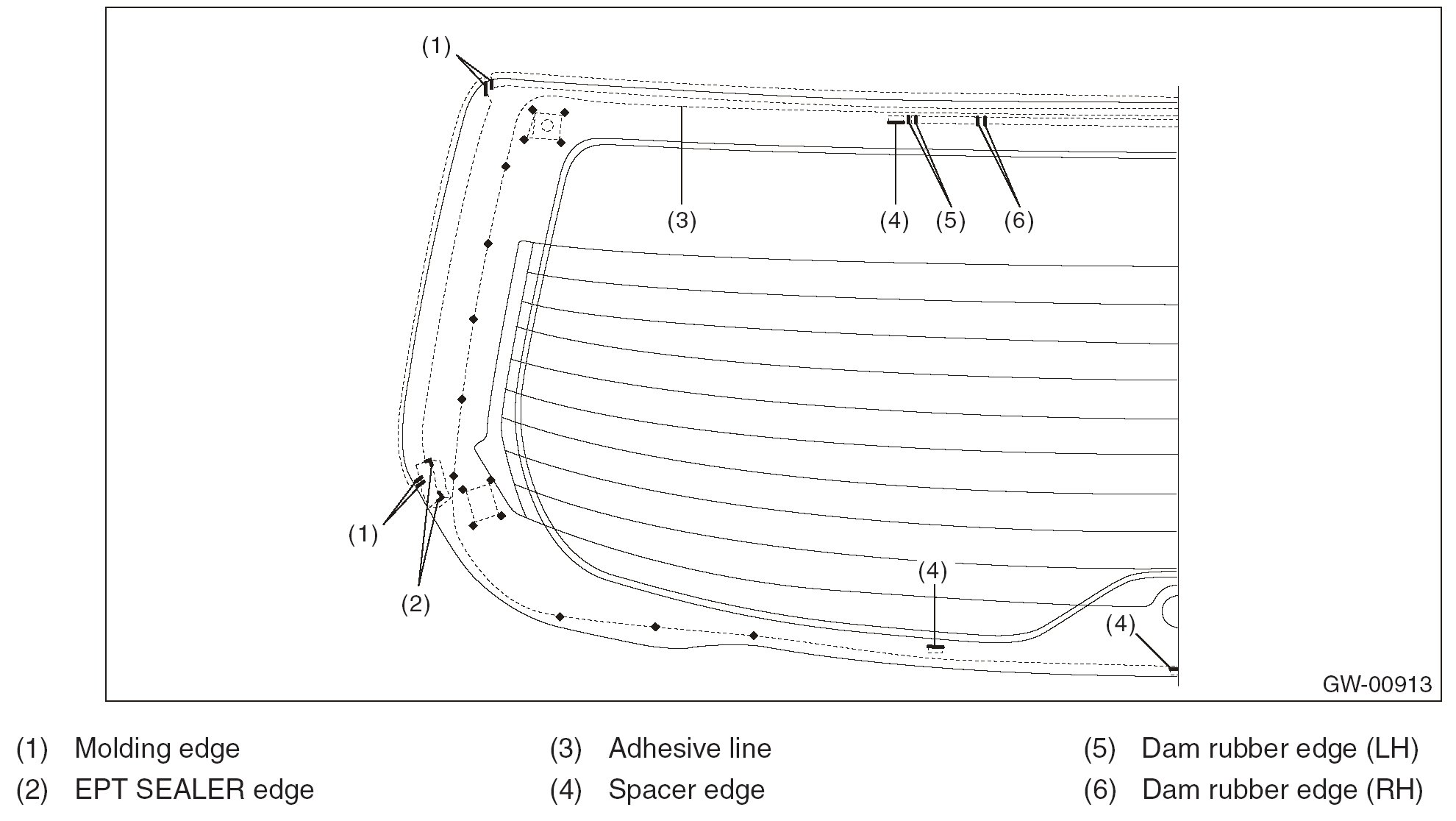 NOTE: When applying adhesive and installing the dam rubber and molding, refer to Ag printing as a mark.