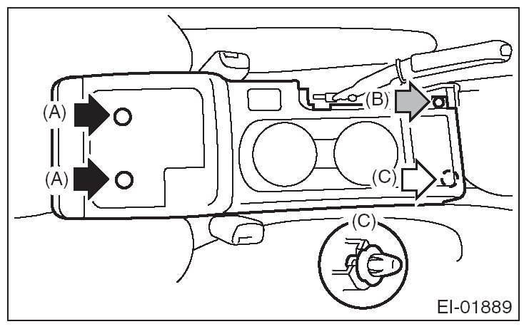 3. Remove bolt (A) screw (B) and clip (C).