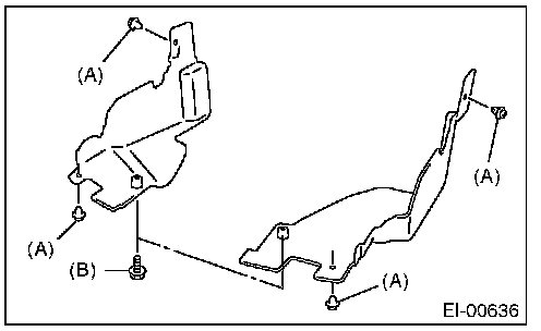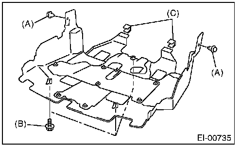2. Remove clips (A) and (C), and bolts (B) in the front fender, then remove the front under cover.