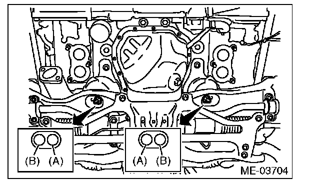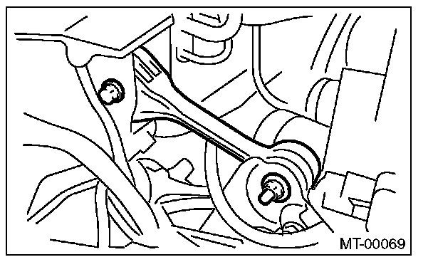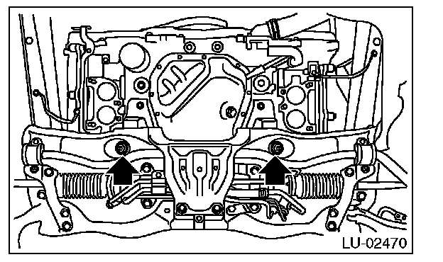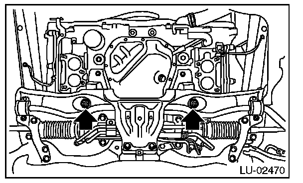 8) Tighten the nuts which install engine mounting onto front crossmember.