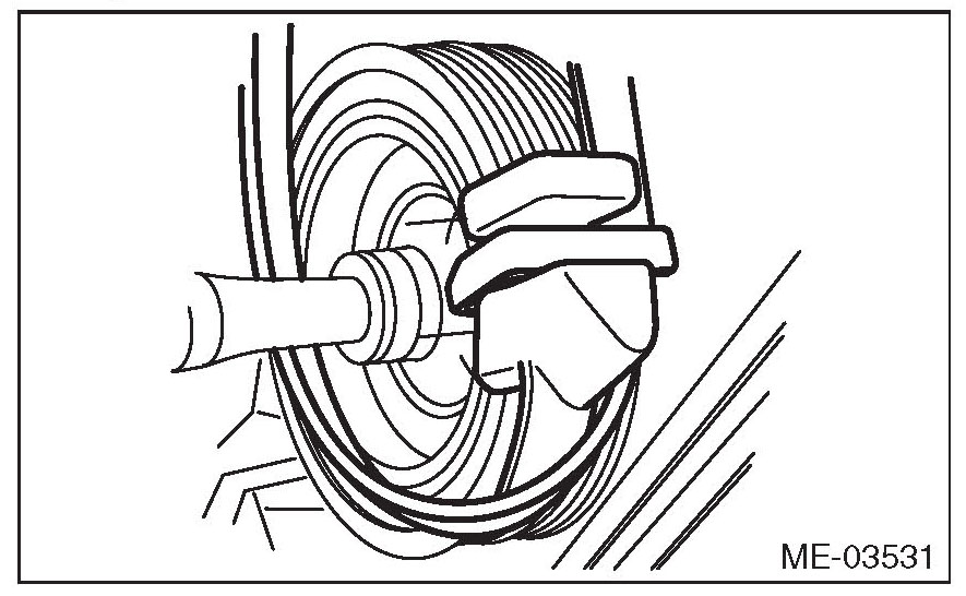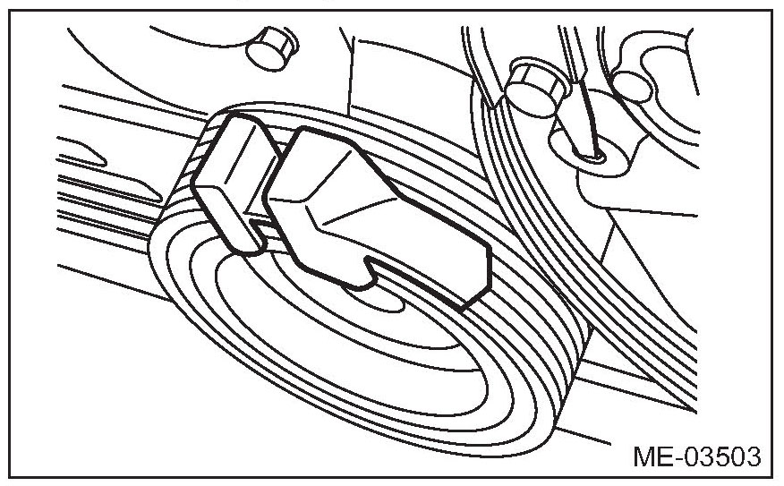 2) The rib of the rear side belt is securely placed on the groove of the A/C compressor pulley.
