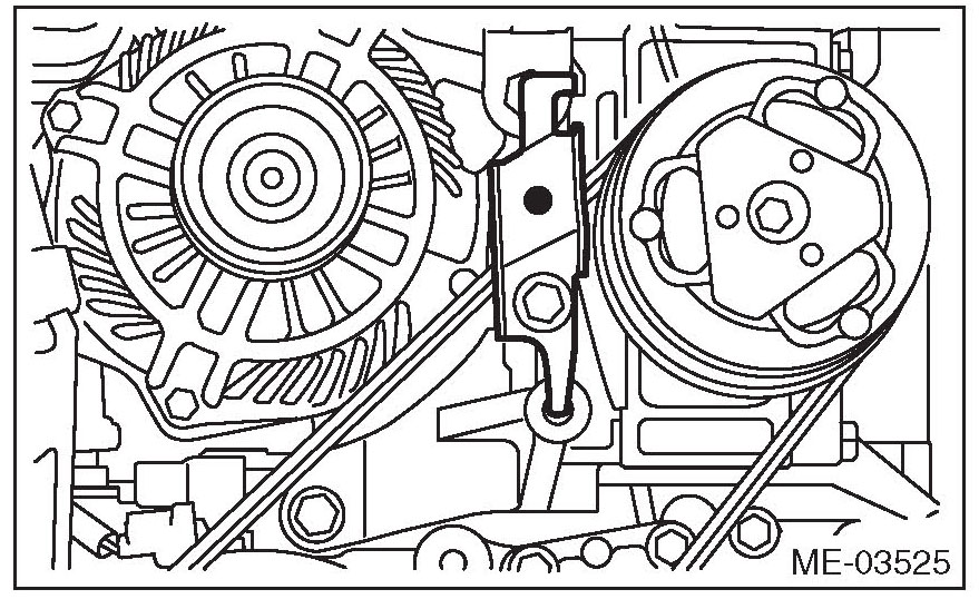 ^ If the front side belt tension is higher, unexpected force is generated at the power steering oil pump, generator and crankshaft bearing, causing abnormal noise due to abnormal wear of the bearing.