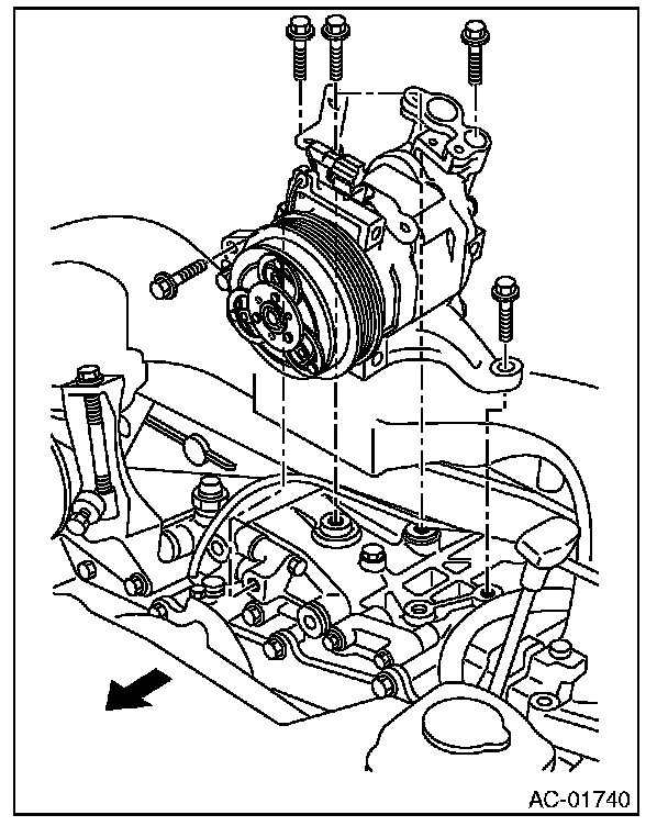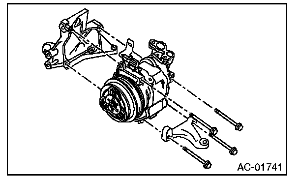 2. Replace the O-rings on low/high pressure hoses with new parts, and apply compressor oil.