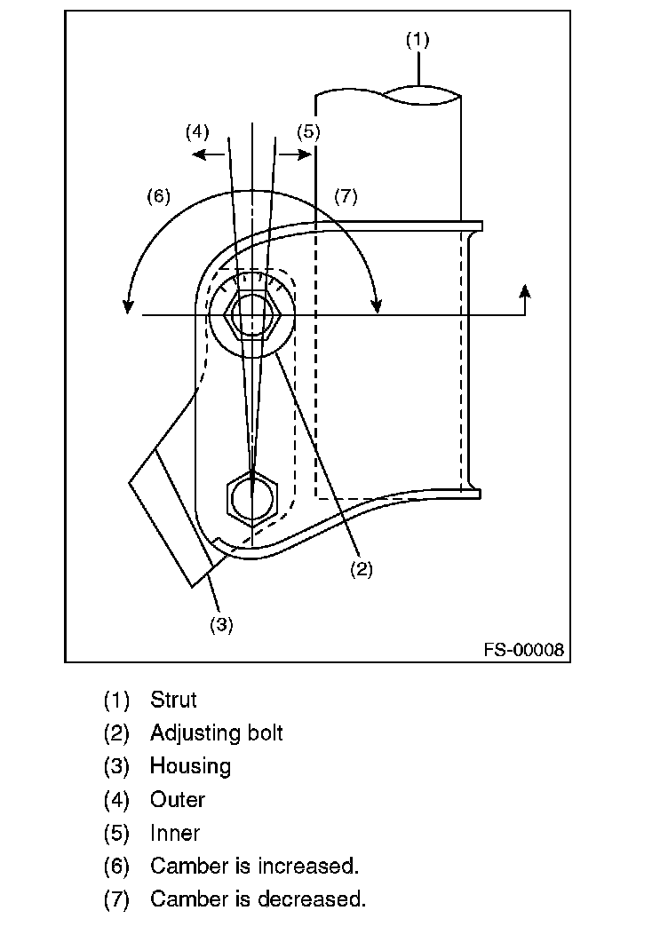 3) Turn the camber adjusting bolt so that the camber is set at specification.