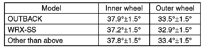 1) Check that the left and right wheel steering angles are within specification.