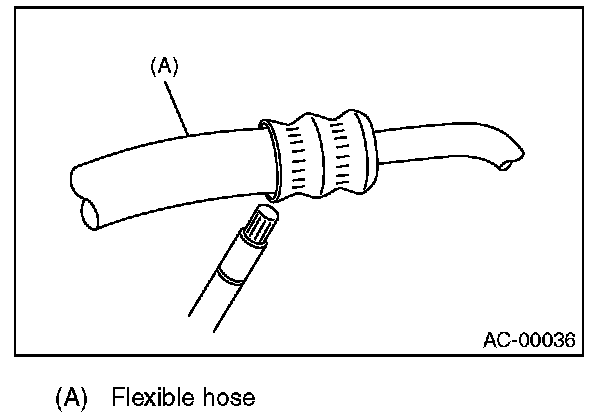 5. Disconnect the drain hose from the heater case, and check the hose end for at least 10 seconds. After the test is finished, reconnect the drain hose.