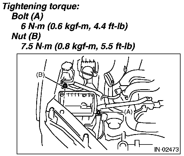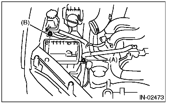 1. Install the bolt (A) and nut (B) which secure the air cleaner case (front) to the body.