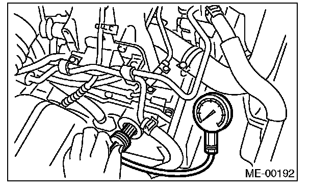 11) Crank the engine by the starter motor, and read the maximum value on the gauge when the needle of compression gauge is steady.