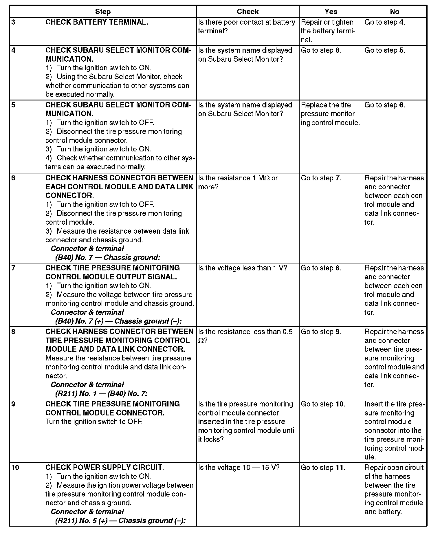 Communication is impossible between the tire pressure monitoring control module and the Subaru Select Monitor.