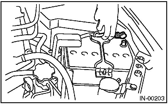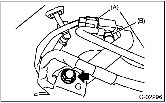 6. Disconnect the pressure hose from the fuel tank pressure sensor (B).