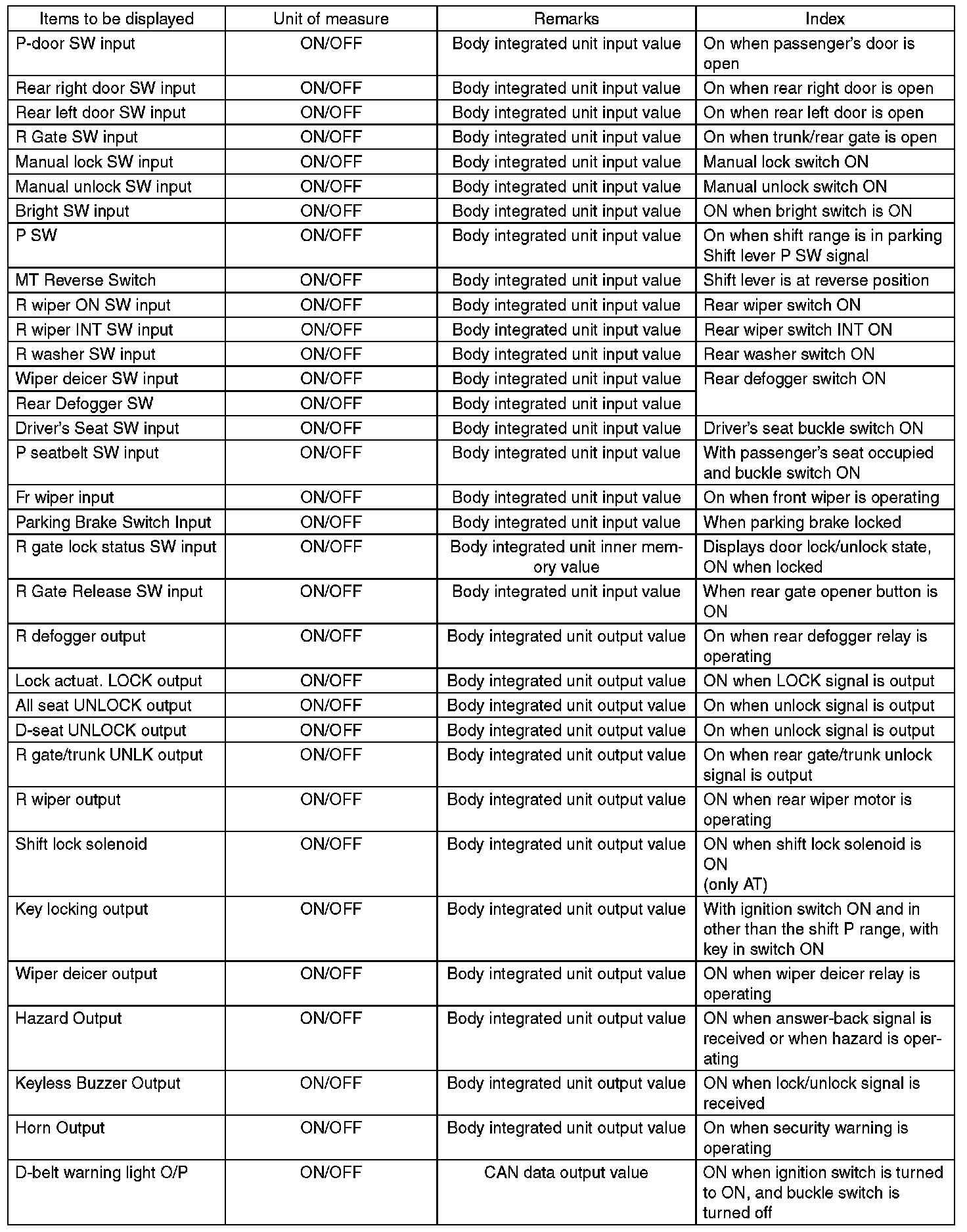 - Be sure to register immobilizer if body integrated unit is replaced with a new part. (models with immobilizer)