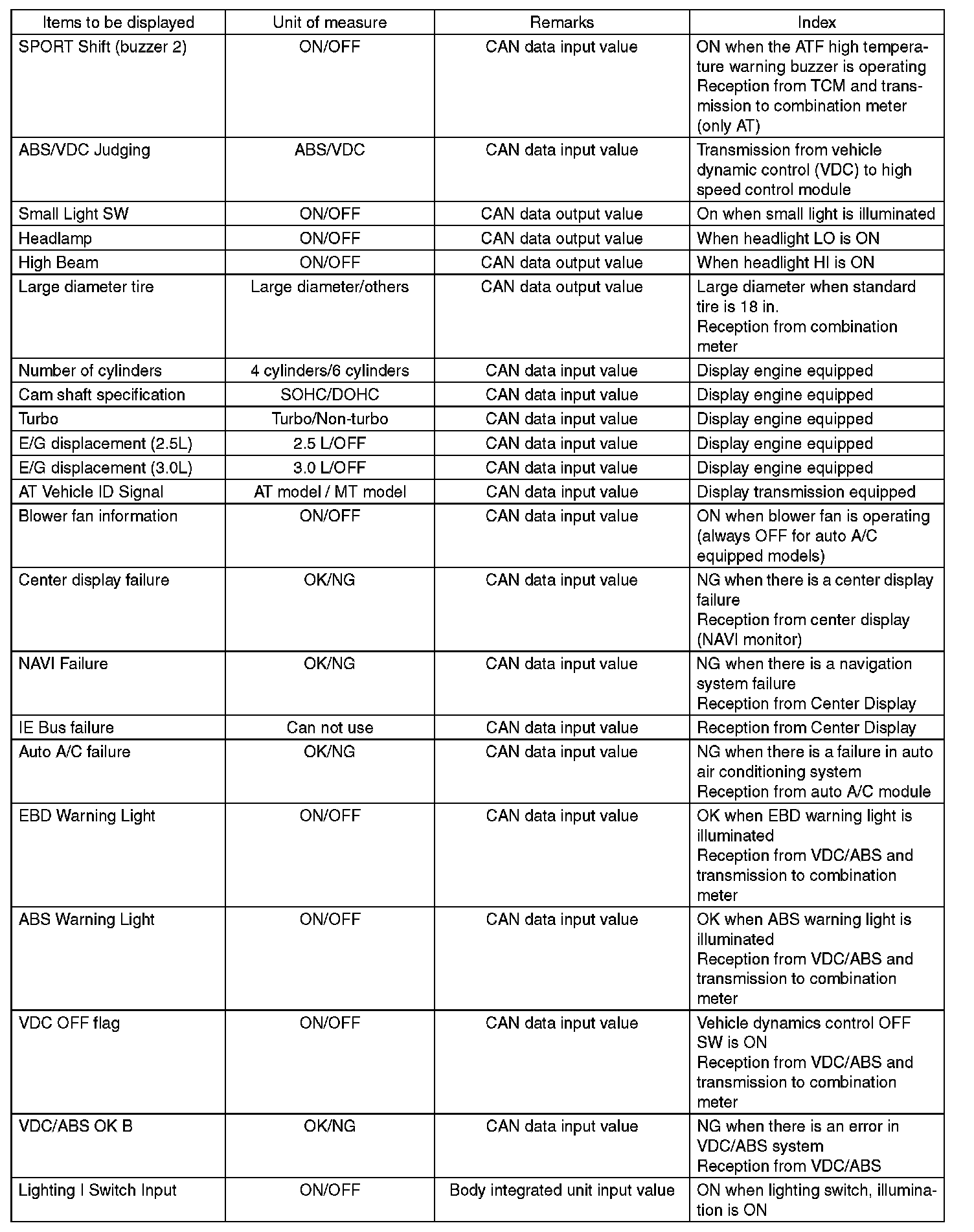 - The above settings must match the actual vehicle equipment.
