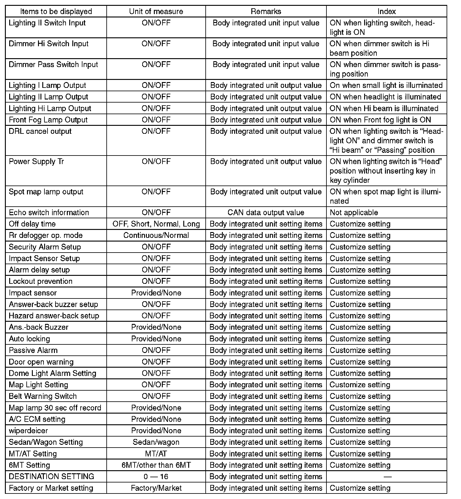 Body integrated unit is core of LAN system, and also can select the function of all vehicle system control. It is possible to control the original functions of vehicle when registrations of body integrated unit and function setting are corresponded to vehicle equipment.
