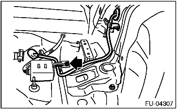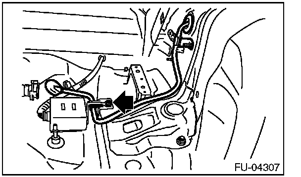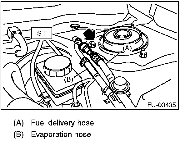 2. Disconnect the quick connector of the fuel delivery hose by pushing the ST in the direction of the arrow.