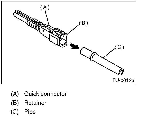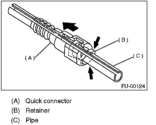 1. Push the retainer in the direction of the arrow, disconnect the quick connector from pipe.