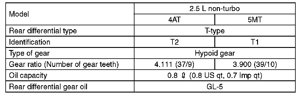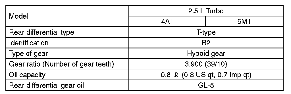 SPECIFICATIONREAR DIFFERENTIAL