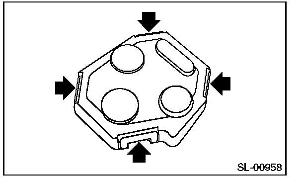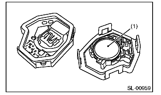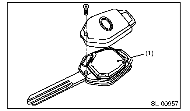 1. Disassemble the keyless transmitter, and take out the transmitter case (1).