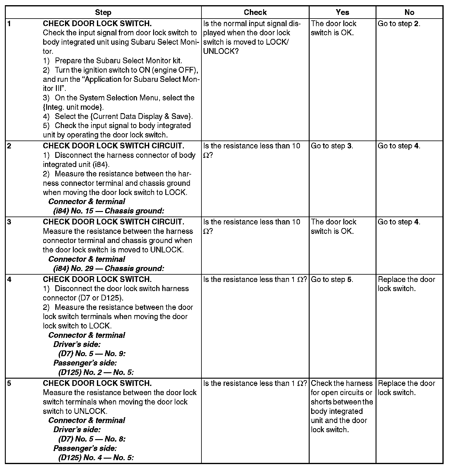 Check Door Lock Switch