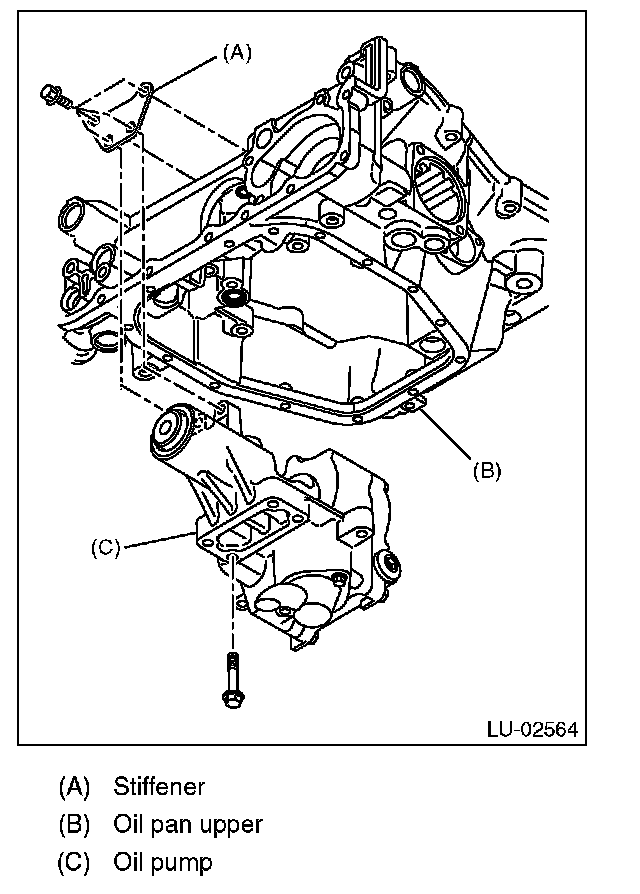 4) Install the stiffener and the oil pump.