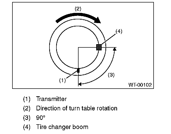 ^ To prevent damaging the transmitter, set the tire changer boom in the position as shown in the figure.