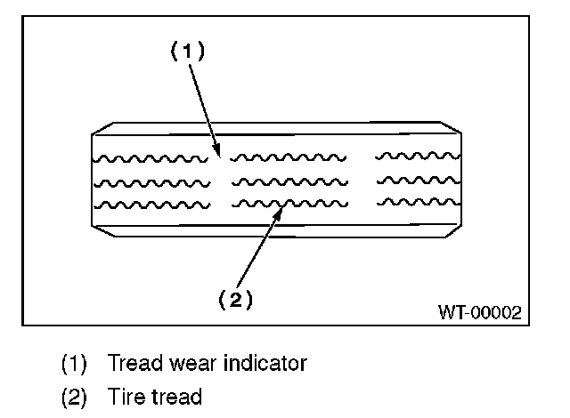 2) When the "tread wear indicator" appears as a solid band across the tread.
