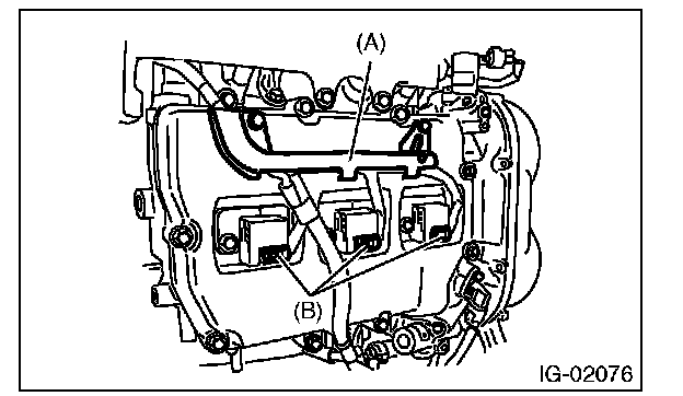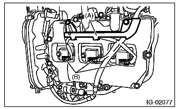 4. Disconnect the connector (B) from ignition coil.