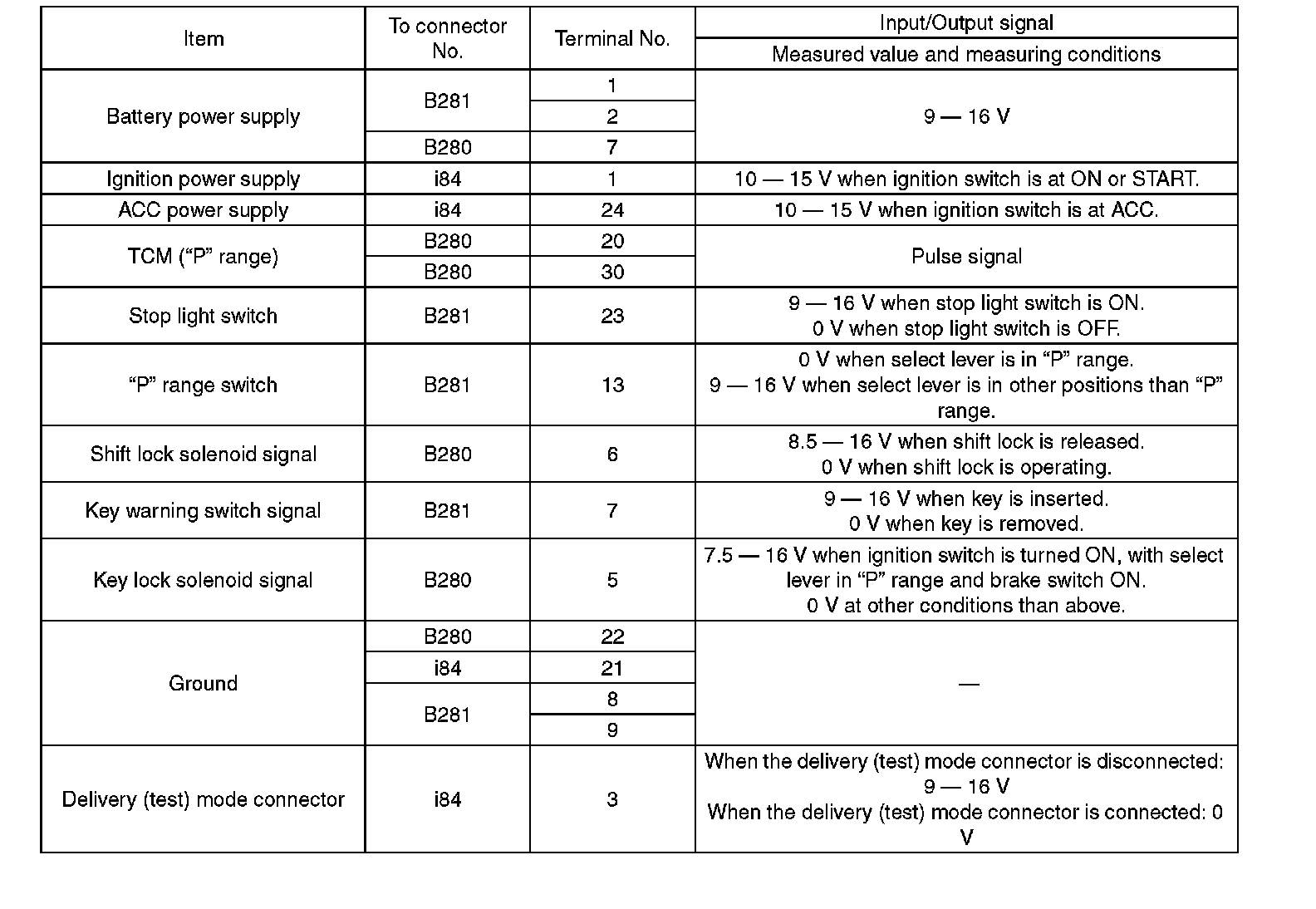 Pinout Values and Diagnostic Parameters