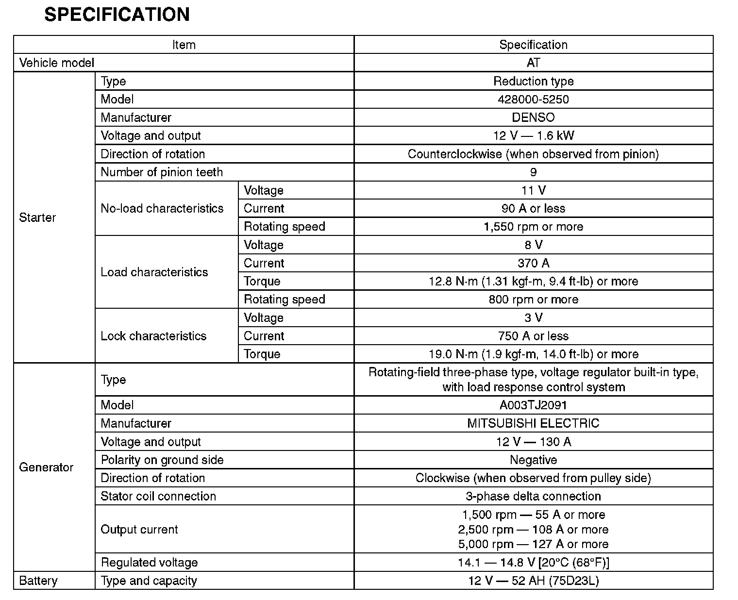 Specifications