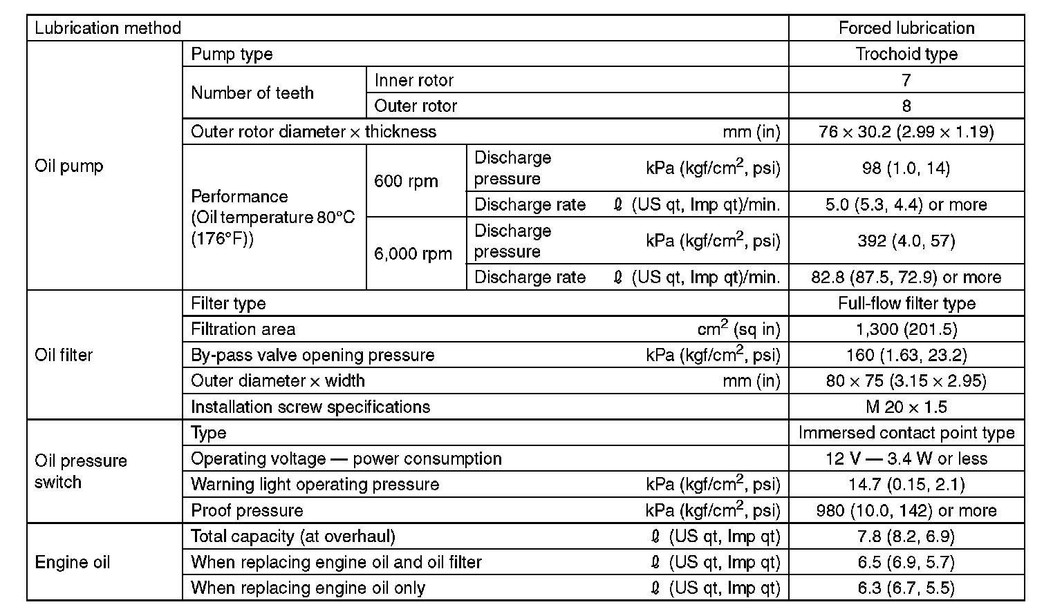 SAE viscosity No.: 30, 40, 10W-50, 20W-40, 20W50