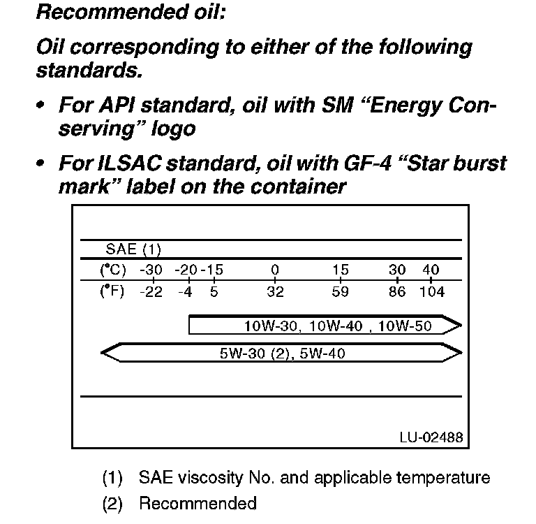 ^ If the vehicle is used in regions of high temperatures or in other severe environments, use oil with the viscosities shown below.