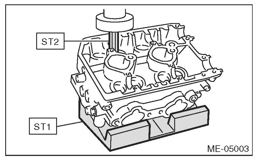 2) Place the cylinder head on ST1.