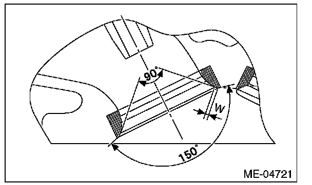 Contacting width W between valve and valve seat: