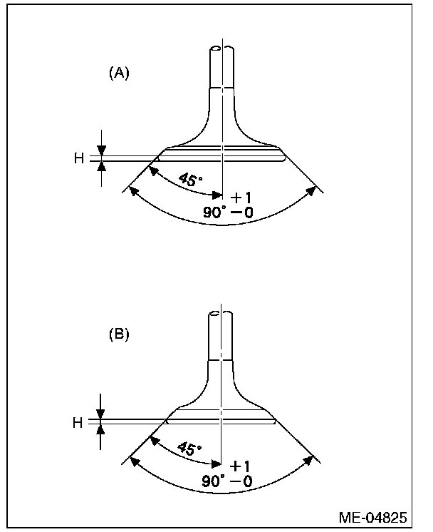 1) Inspect the flange of valve and valve stem, and replace the valve with a new part if damaged, worn, deformed, or if dimension "H" in the figure is outside of the specified limit.