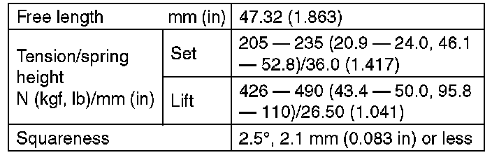 1) Check the valve springs for damage, free length, and tension. Replace the valve spring if it is not within the standard value presented in the table.