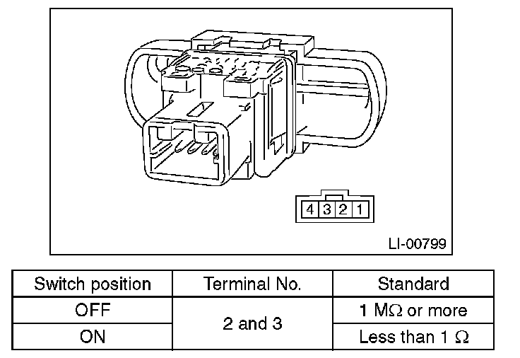2. If the result of the inspection is not at the standard value, replace the hazard switch.