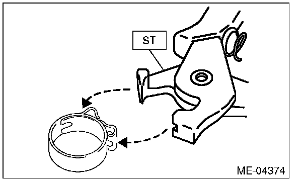 NOTE: Pinch the clamp of the PCV hose assembly by fitting the cut out in the ST with the protrusion on the clamp as shown in the figure, and unlock the clamp.